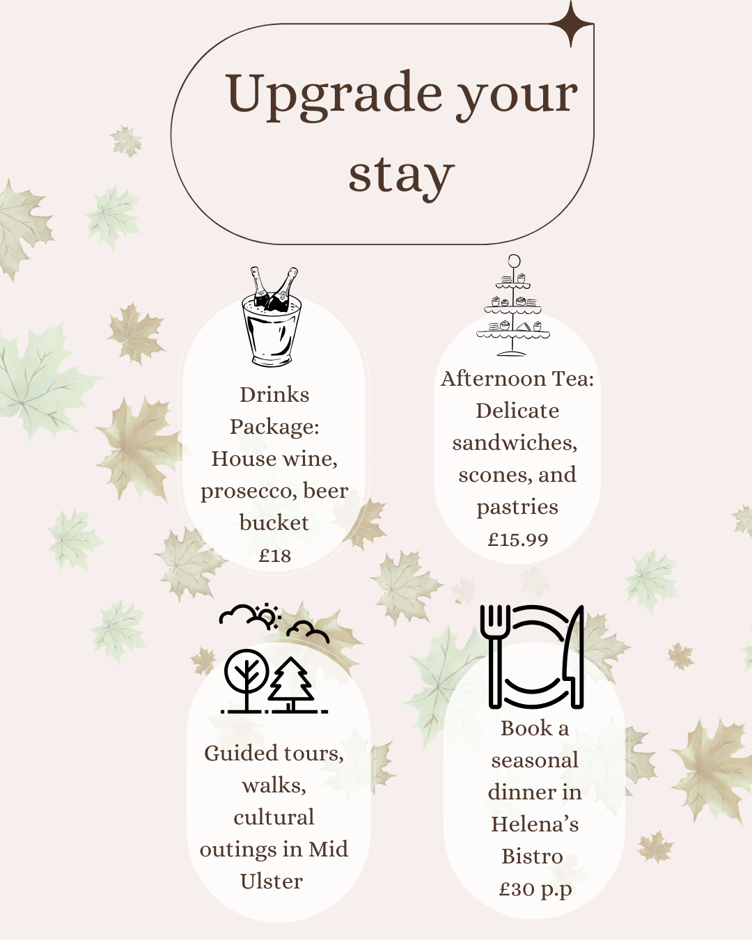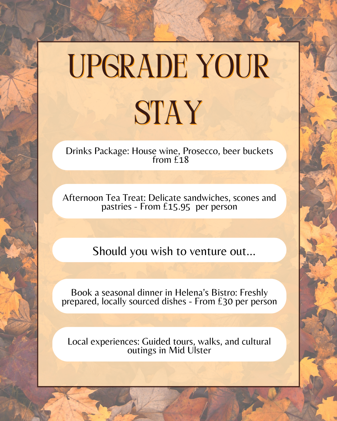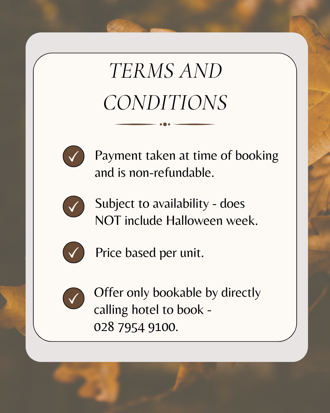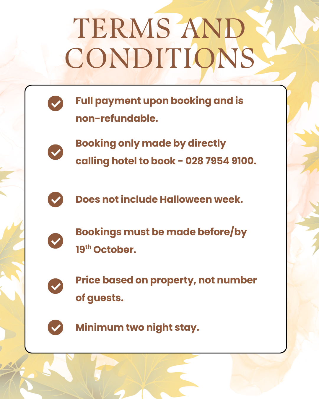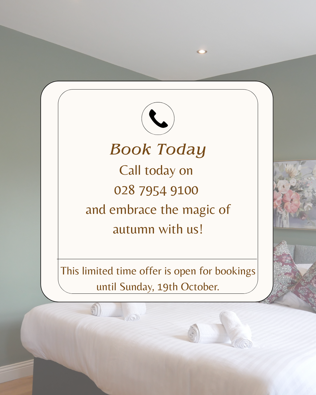 Book direct on +44 28 7954 9100 and make your autumn truly special at Walsh’s Group.